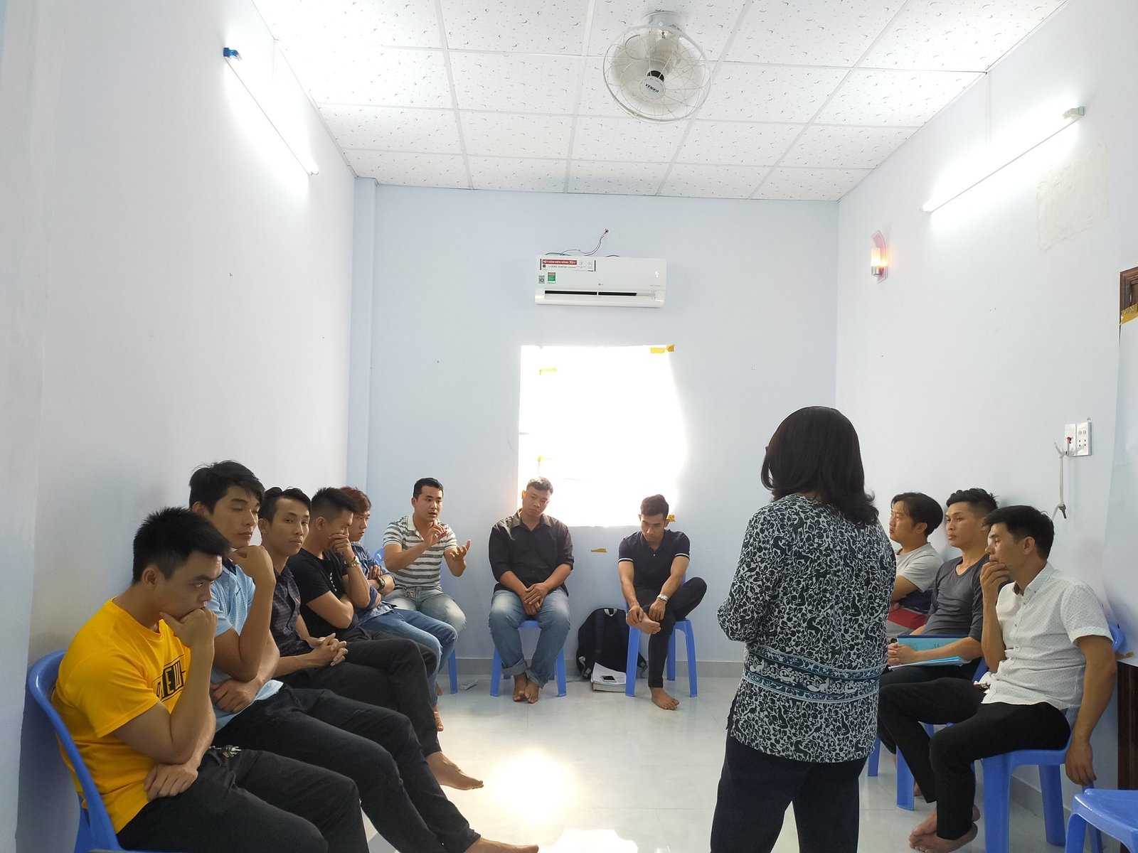 Kết thúc buổi tập huấn là phần chia nhóm, sắm vai, đổi vai để thực hành những kiến thức vừa mới học được dựa trên một tình huống thực tế của cá nhân.